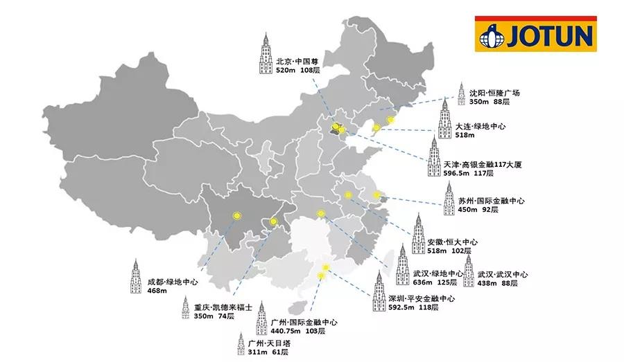 一直以來,佐敦的工業(yè)保護(hù)涂料已成為卓越品質(zhì)的象征,曾為包括世界第一高樓迪拜的哈利法塔、阿聯(lián)酋迪拜的帆船酒店、法國埃菲爾鐵塔等世界知名建筑提供涂料解決方案,近年來佐敦更是服務(wù)了一系列中國的超高層建筑,獲得了業(yè)內(nèi)的高度認(rèn)可: